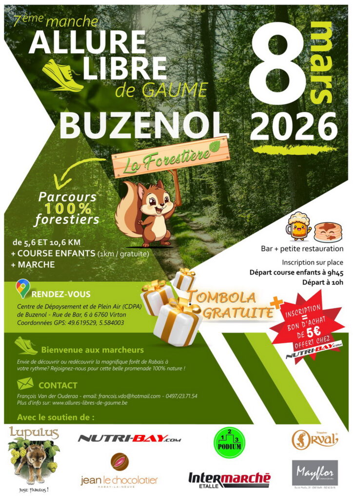 - Ce parcours vous fera partir du centre de dépaysement de Buzenol en direction de la célèbre vallée de Rabais. Les premiers 2-3 kilomètres sont à plat sur de petits chemins forestiers, de quoi trouver son rythme en début de course.